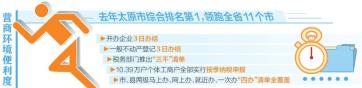近日,記者從太原市政府新聞辦召開的新聞發布會上獲悉,山西省營商環境整體評估報告顯示,去年太原市營商環境便利度綜合排名第1,領跑全省11個市;在國家發改委組織的對包括直轄市、計劃單列市、省會城市在內的41座城市進行的營商環境評價中,太原市營商環境便利度獲評優良。