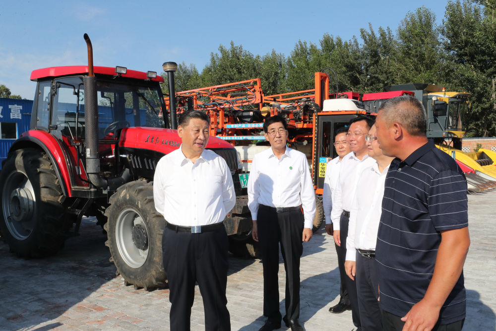 2020年7月22日,習近平來到吉林省四平市梨樹縣國家百萬畝綠色食品原料(玉米)標準化生產基地核心示范區、盧偉農機農民專業合作社考察。新華社記者 鞠鵬 攝