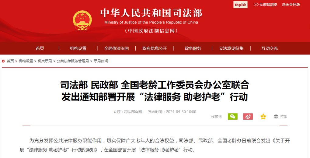 司法部、民政部、全國老齡辦日前聯合發出《關于開展“法律服務 助老護老”行動的通知》,在全國部署開展“法律服務 助老護老”行動。行動聚焦老年人群體公共法律服務需求,推出6個方面措施。
