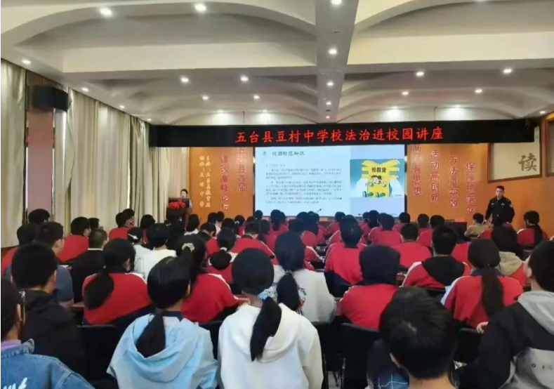 為切實提升青少年法律意識與自我保護能力,重點強化對電信網絡新型違法犯罪的識別防范能力,守護學生財產安全,9月24日,五臺縣檢察院聯合縣公安局、豆村派出所、彩虹禁毒大隊、縣社區戒毒社區康復服務中心,共同走進豆村中學開展法治宣講活動,為全校師生送上一份“法治大禮包”。