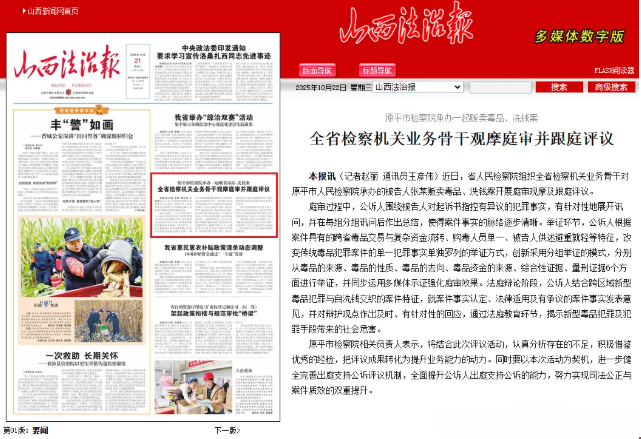 近日,省人民檢察院組織全省檢察機關業務骨干對原平市人民檢察院承辦的被告人張某販賣毒品、洗錢案開展庭審觀摩及跟庭評議。