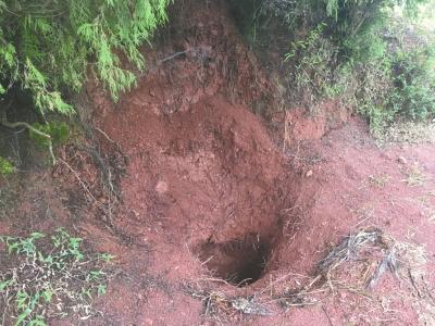 順著吳大爺的指引,記者穿過一片蘆葦地,整條山路雜草叢生,無路可尋。在山頂的一棵柏樹下,記者找到了尸體被埋處,一個約半米深、寬半米的泥坑,樹根裸露在外,周圍新翻的泥土掩蓋了雜草。現場還有警方取證時留下使用過的一次性手套。