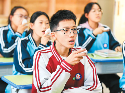 昆都侖區一所中學的學生使用英語聽說學習平臺進行練習。昆都侖區教育局供圖