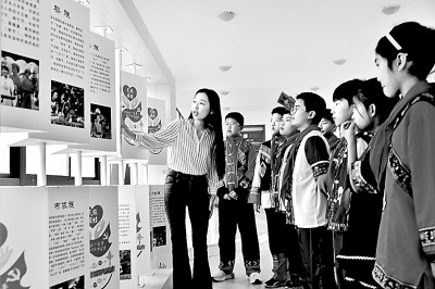 江蘇省如皋經濟技術開發區第三實驗小學“紅石榴家園”,統戰部門工作人員向學生介紹各民族文化習俗。吳樹建攝/光明圖片