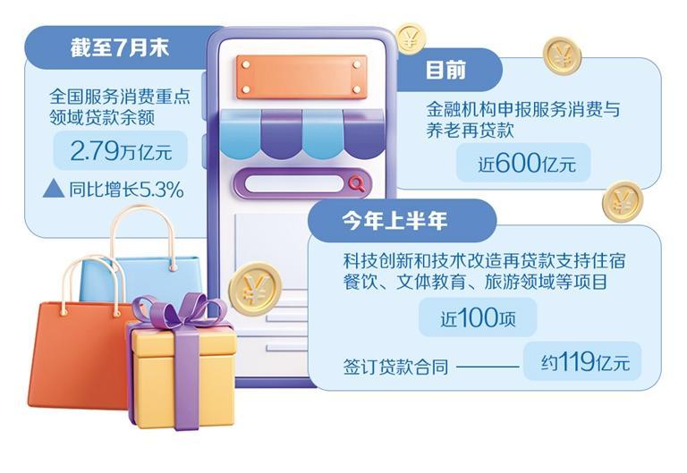 比如,央行設立兩個結構性貨幣政策工具。5月9日,中國人民銀行印發《關于設立服務消費與養老再貸款有關事宜的通知》,專門設立5000億元服務消費與養老再貸款,引導金融機構加大對住宿餐飲、文體娛樂、教育、居民服務、旅游等服務消費重點領域和養老產業的信貸投放。目前,金融機構申報服務消費與養老再貸款近600億元,涉及經營主體近4000家,貸款5700多筆。