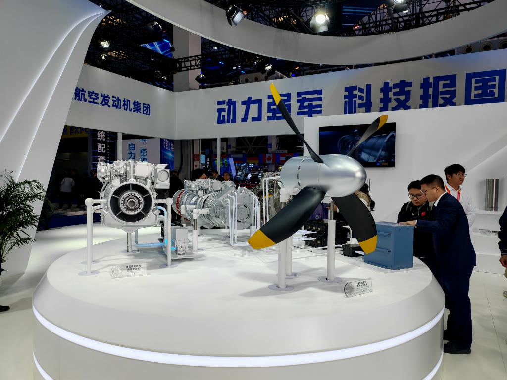 圖為AC系列民用直升機模型。新華社記者宋晨 攝 作為“空中救援利器”,AC系列民用直升機在經(jīng)濟建設(shè)和應(yīng)急救援等社會公共事務(wù)中發(fā)揮了重要作用。展臺上有多款模型:4噸級AC332民用直升機、7噸級AC352民用直升機,以及13噸級AC313A民用直升機。航空工業(yè)集團(tuán)裝備體系部副部長趙雷表示,我國在研的大型重載運輸直升機,因為運載能力大,且有更快的響應(yīng)速度,在重大災(zāi)害應(yīng)對中可發(fā)揮重要作用。 《民用直升機中國市場預(yù)測年報(2025-2034)》預(yù)計,到2029年,中國民用直升機機隊規(guī)模將突破1700架,飛行量將超過30萬小時,未來10年中國民用直升機飛行時間將總體呈增長趨勢。 航空之“心”動力澎湃。 作為飛機的“心臟”,航空發(fā)動機被譽為現(xiàn)代工業(yè)“皇冠上的明珠”,是國家科技實力和創(chuàng)新能力的重要體現(xiàn)。 1100千瓦級渦軸發(fā)動機是中國航空發(fā)動機集團(tuán)有限公司自主研制的先進(jìn)渦軸發(fā)動機,采用組合壓氣機、回流燃燒室、附件傳動單元體等設(shè)計,結(jié)構(gòu)緊湊輕巧、性能優(yōu)越,可實現(xiàn)振動監(jiān)測、壽命管理,適用于最新一代6噸級的直升機。