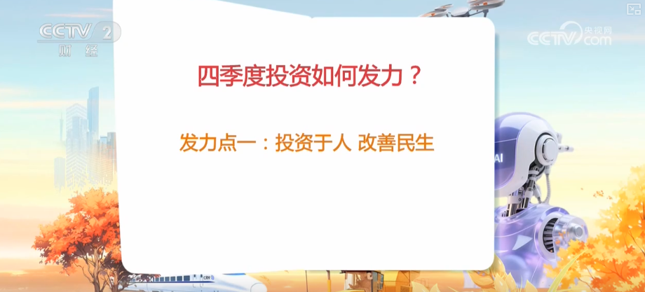 國家信息中心經濟預測部產業經濟研究室主任魏琪嘉介紹,四季度整個投資的重點領域,很多集中于民生項目建設方面,包括城市更新改造,地下管廊改造,包括停車場建設以及高標準農田等,這些事關民生的一些重點的領域,實現這種投資于物與投資于人的這種高效協同,更多的投資于人。