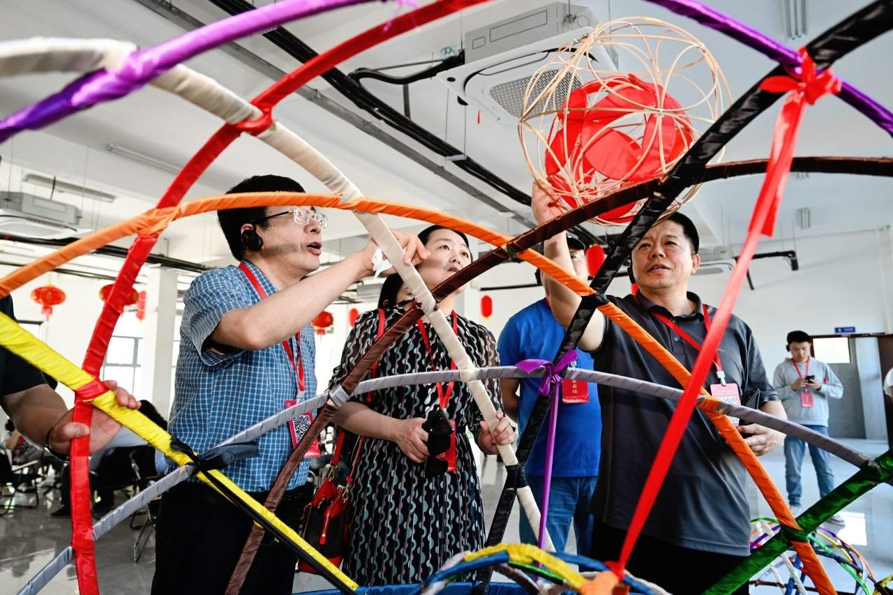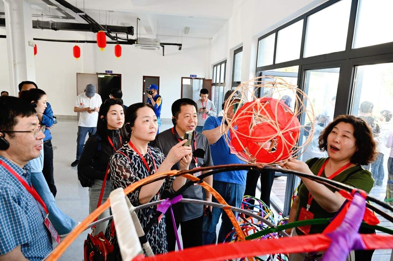 在“滾燈”文化公園,記者團(tuán)親身感受了一把“潮鄉(xiāng)”的“滾燈”藝術(shù)的魅力。“滾燈”源自江南一帶的民間節(jié)日慶典,融合了舞蹈、技巧與體育精髓,愛好者展示給記者們的金港村“滾燈”,其制作工藝之考究讓大伙都嘖嘖贊嘆。