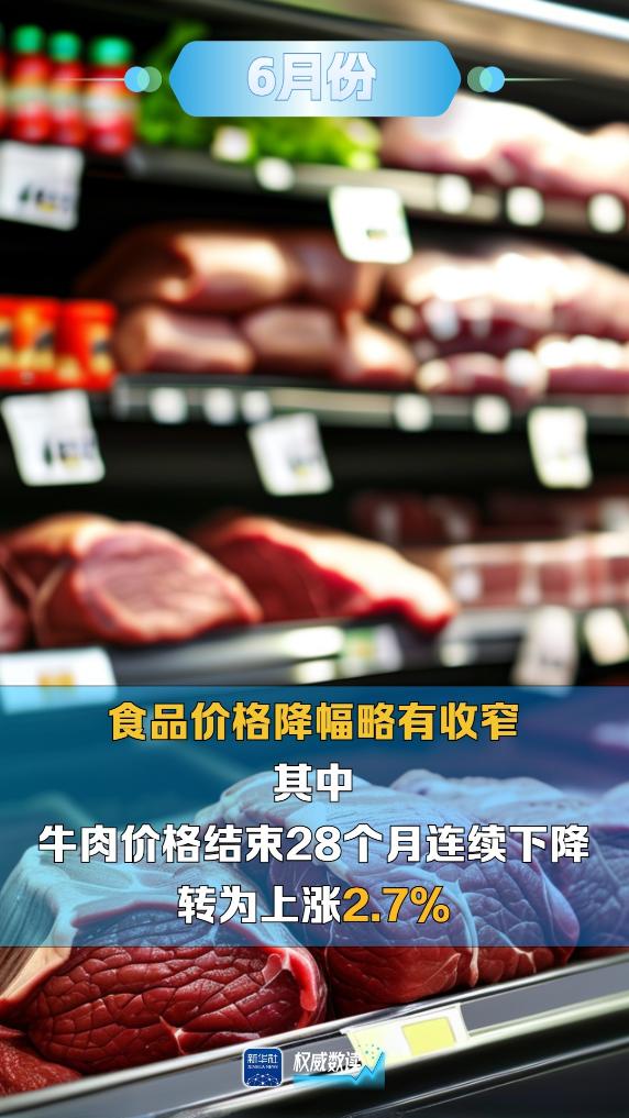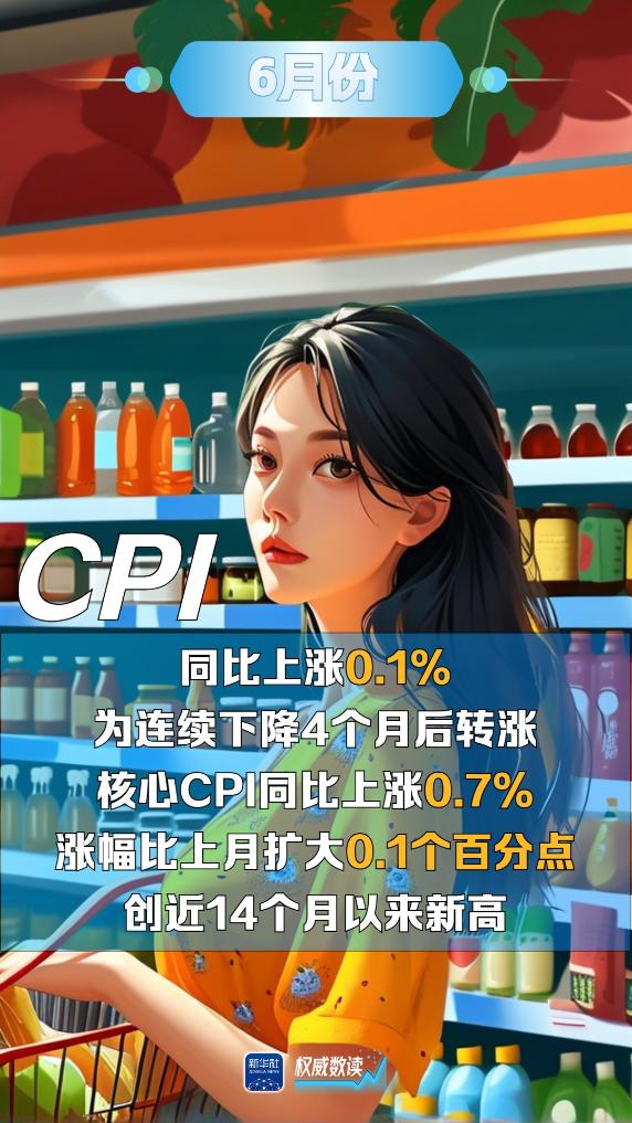 國家統計局9日發布數據顯示,6月份,擴內需、促消費政策持續顯效,居民消費價格指數同比由上月下降轉為上漲0.1%;環比下降0.1%,降幅比上月收窄0.1個百分點;扣除食品和能源價格的核心CPI同比繼續回升,上漲0.7%。工業生產者出廠價格指數環比下降0.4%,降幅與上月相同。