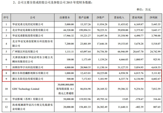 東陽浩瀚&東陽美拉2015年財務數據