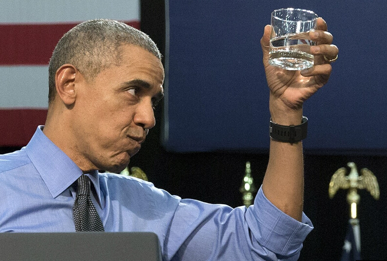 當天,奧巴馬主動喝下當地經過過濾的飲用水,以此表明對這座城市水質的信心。