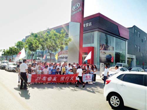活動當天天氣晴朗,店內工作人員從早上7點半開始就陸續到店進行準備工作,8點開始車友們陸續到店,將車順序停好后便有條不紊地進行報名和簽協議工作,維修技師忙著檢查車輛,銷售顧問忙著粘貼車貼、會徽和車號牌。到8點30分的時候,車友報到工作順利就緒,接著車友會工作人員又進行了車輛安全知識和路途注意事項的提醒與活動行程的安排,然后全體車友會成員和工作人員一起合影留念。9點半以后23輛起亞車帶著東風悅達起亞的文化和祝福,浩浩蕩蕩出發了,行程中車隊引來了路人的圍觀與矚目。