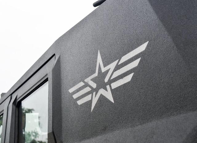 車身表面使用了亞光色涂裝,披上厚重的鋼板并經過高溫噴砂處理,車窗采用了高強度復合玻璃,厚度比起一臺iPhone7還要厚。幾乎全車做過了防彈處理和碳纖維處理,側面還取消了C柱和D柱,換裝了具有一定防爆能力的輪胎,據說輪胎支持在全部破損的情況下勻速行駛。