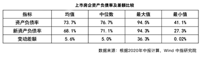 橫向比較來看,中國指數研究院分析指出,申萬28個行業分類中,房地產行業資產負債率為79%,位居行業第三。根據新資產負債率的標準,55%的上市房企負債率超70%。這意味著“三道紅線”中僅此一項,“踩線”企業已超半數,這些企業年內降負債的壓力將持續存在。