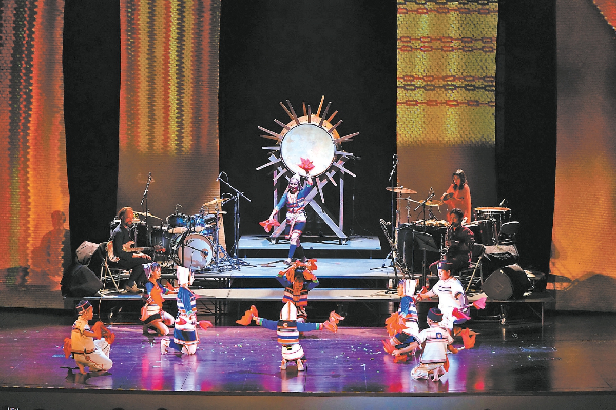 10月12日晚,一場將云南深山原始生命力融合跨越時空藝術想象力的演出登上北京舞臺。作為第二十八屆北京國際音樂節的重磅演出之一,由普利策音樂獎得主、華人作曲家杜韻傾力創作,北京國際音樂節與美國林肯中心聯合委約的音樂劇場作品《刻在森林的海》在北京喜劇院世界首演。來自云南西雙版納的非遺項目基諾族大鼓舞傳承人何桂英,帶領8位基諾族少年,在舞臺上敲響大山里特有的聲音。