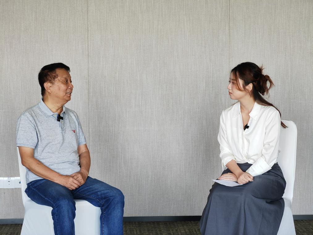 導演黃建新(左)接受記者專訪。新華社記者 鄧瑞璇 攝