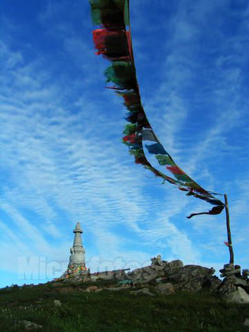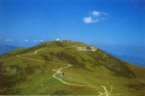 五臺(tái)山的西臺(tái)人稱掛月峰,又名明月山,海拔2773米。《清涼山志》載:西臺(tái)“頂廣平,月墜峰巔,儼若懸鏡,因以為名”。臺(tái)頂有泉,群山拱合,巖谷幽深;臺(tái)頂亦有寺,名叫法雷寺,內(nèi)供獅子吼文殊,其寓意是讓強(qiáng)大的獅子吼叫聲驚醒眾生。整個(gè)山勢(shì)峰巒疊嶂,如同孔雀開屏。