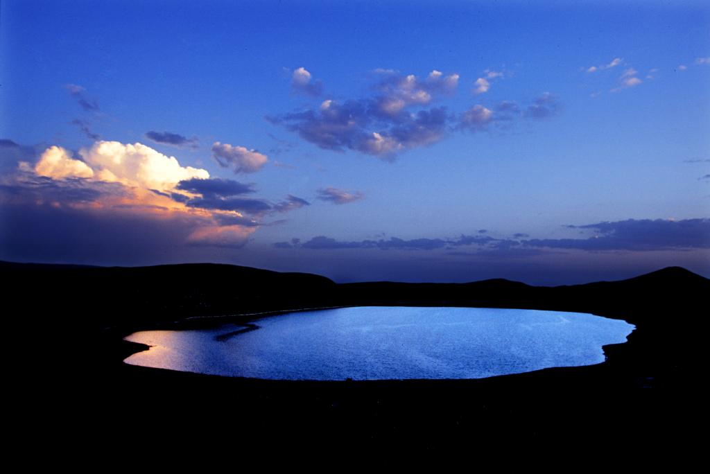 一般意義上的天池是單指馬營海,位于寧武余莊鄉的分水嶺之山巔,海拔約1900米,池面0.8平方公里,水深12米。馬營海山環樹合,芳草萋萋,綠柳依依;池中碧波蕩漾,游魚逐浪,群鴨戲水,蛙鼓陣陣。晴日登高遠眺,茫茫峻嶺之間出現一塊巨大的無瑕玉璧。紅日映照之下,金光四射,池水通紅,耀眼奪目,古人題名“天池錦鱗”或“天池霞映”,位列寧武古八景之首。池中有天然生長的鯉魚、鰱魚、草魚和鯽魚,肉質細膩,味道鮮美,是周邊百姓待客的上等菜肴。每年四月冰消時的“開冰魚”更是絕妙的美味,被視為上等補品,隋唐時是只能皇家品嘗的貢品。魚是哪里來的?老百姓不放魚苗,魚總有枯竭的時候。可是千百年來,一直在捕魚、一直在吃。有專家判斷,魚只有在冷熱水交匯的地方才會自行繁殖,說明池下有溫泉。春天,地表溫度高了,