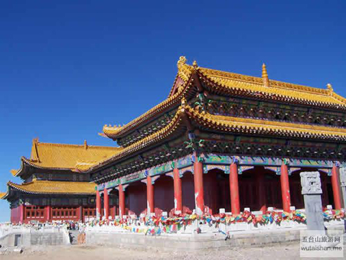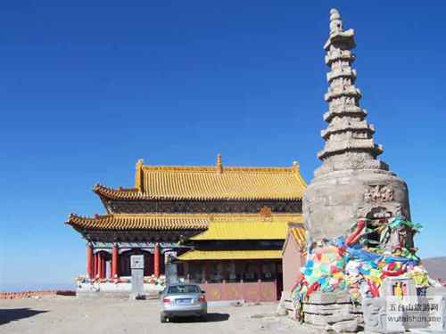 五臺山中臺翠巖峰,又名平頂山,海拔2894米,居東、西、南、北四臺的中心,也是四臺的發脈之祖,臺頂面積也最大。《清涼山志》云:“巔巒雄曠,翠靄浮空”。其山勢酷似一頭挺立的雄獅。臺頂寺院名作演教寺,內供孺童文殊。