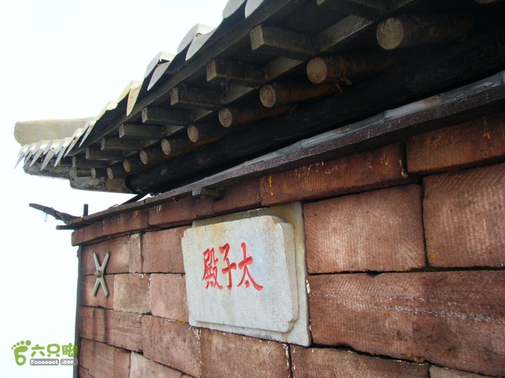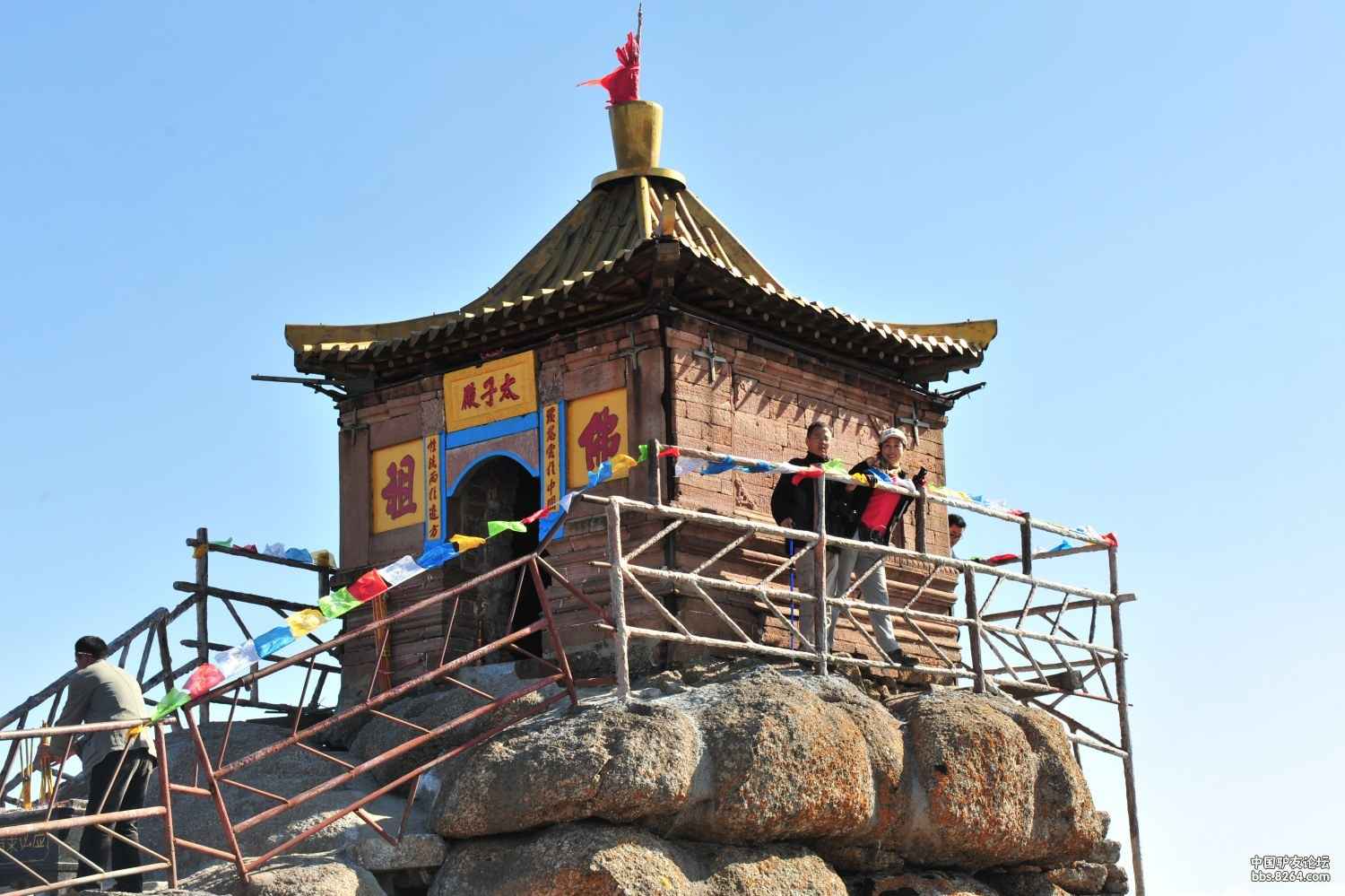 蘆芽山主峰絕頂周方僅約10平方米的石坪上,巍然托起一座正方體狀石砌建筑,這便是太子殿。三面懸崖,甚為險峻。因其位居群山之極,數十里外即可看到。太子殿為石壁構筑,殿脊有一鐵棍直指蒼穹,似為避雷特置。殿頂向四面披散,原以銅瓦鋪蓋,今已遺失。殿門北向而開,門據有石鑿“太子殿”三字赫然醒目。兩側墻壁又鑿“佛祖”二字,工整雄勁。殿門兩側石刻聯語系光緒年間白文良倡修該殿時書鑿,句為:復慈云于中國,性潔雨于邊方。著名書法家黃克毅有詩贊太子殿景致: