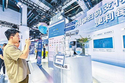 不斷發展的人工智能技術,為支付機構優化服務提供了支撐。近日,在上海舉行的2024世界人工智能大會上,觀眾通過基于螞蟻百靈大模型的“支付寶智能助理”現場下單咖啡。王 初攝(人民視覺)