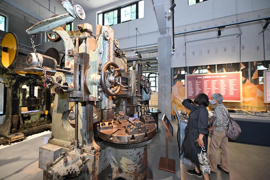 2025年5月18日,游客在天津機床工業(yè)博物館內(nèi)參觀機床設(shè)備。新華社記者 孫凡越 攝