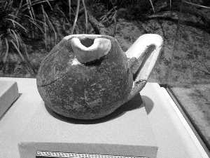 高淳博物館的二樓是一個“通史”展,從6300年前薛城聚落開始說起。彩陶罐、黑斑玉鐲、黑陶杯、螺螄、貝殼……這些“寶貝”都是從高淳薛城遺址出土的,它們已經有6300歲了。這些陶器,造型優美,尤其是黑陶杯,造型堪稱時尚,杯口還特意設置了喝水的凹槽。