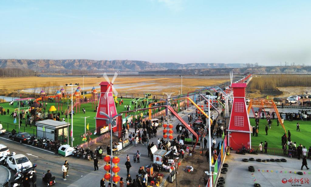 沿著唐家會村整潔的道路往前走,首先看到的是大型親子游樂園。游樂園項目總投資380萬元,占地31.8畝,共有無動力兒童樂園、動力游樂園、水上樂園、滑世界4大板塊,現(xiàn)有無動力設(shè)備35種、動力設(shè)備9種。日常客流量每天約200人至300人,日均收入6000元左右。每到周末或節(jié)假日,客流量逾千人。從2022年10月試運(yùn)行到2023年9月累計收益150萬元。游樂園建成投運(yùn)后,不僅改善了本村的生態(tài)環(huán)境,也填補(bǔ)了河曲縣城游樂園短缺這一空白,為河曲縣居民提供了一個體育健身、文化交流、休閑娛樂的室外活動場所,也為河曲縣郊區(qū)文化環(huán)境、生態(tài)環(huán)境的改善發(fā)揮了重要作用。