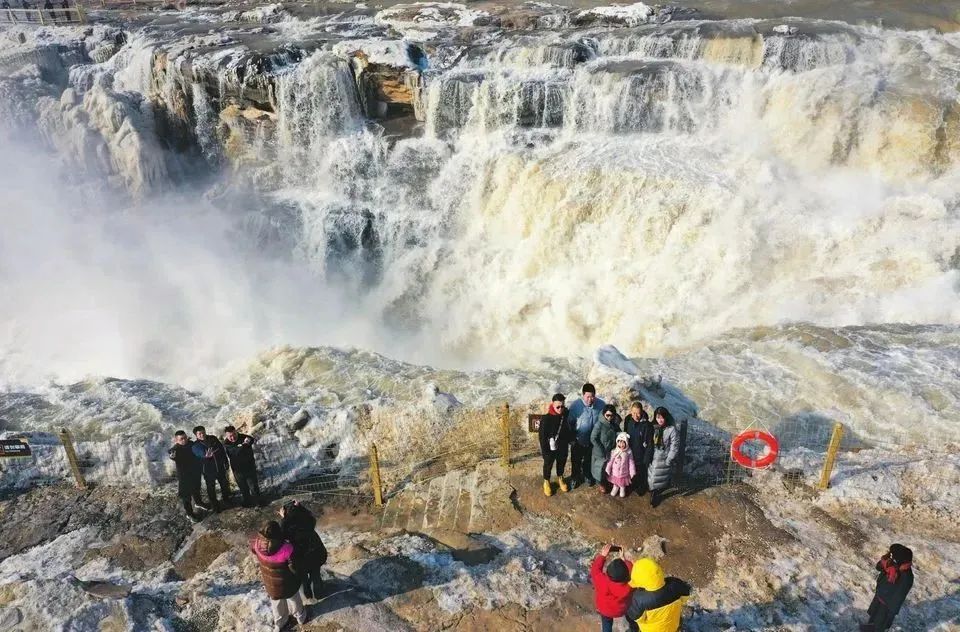 ▲2月9日,游客在吉縣黃河壺口瀑布游覽觀瀑。“立春”后,受氣溫回暖影響,吉縣黃河壺口瀑布冰消河開,再現奔騰咆哮的壯美景觀。呂桂明攝