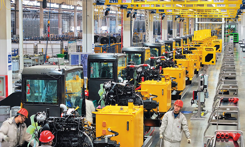 太重智能液壓挖掘機產業園內,裝配生產線井然有序、高效運轉(2024年1月12日攝) 李兆民攝