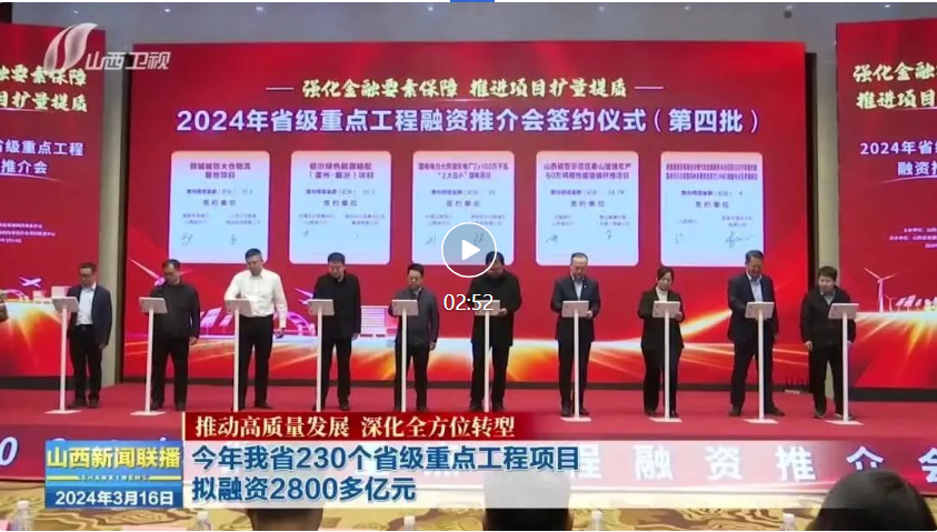 今年全國兩會,《政府工作報告》明確提出“積極擴(kuò)大有效投資”。3月14日,“強(qiáng)化金融要素保障 推進(jìn)項目擴(kuò)量提質(zhì)”2024年省級重點工程項目融資推介會在太原舉行,拉開了今年金融機(jī)構(gòu)與重大項目交流對接的序幕。詳情請點擊視頻