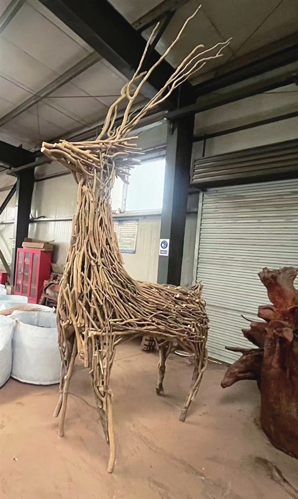 10月24日,記者在該中心看到,工作人員創作了大型鹿形展品及駱駝、袋鼠、犀牛等小型動物展品。這些作品生動精巧,充分保留了植物材料的自然美感,展現了園林廢棄物的藝術潛力。將綠廢轉化為文創展品,不僅開辟了一條資源化利用的“新賽道”,更將環保理念融入了藝術創作,為未來園林垃圾的“變廢為寶”提供了充滿想象力的發展方向。這一嘗試顯示,綠廢資源的價值挖掘正從功能層面向文化審美層面不斷深化與拓展。(劉曉亮文/攝)