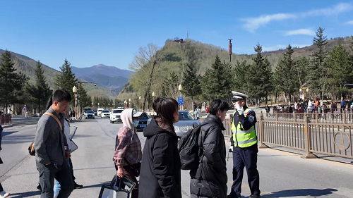 “五一”假期前夕,景區提前安排部署各項工作,以“繡花功夫”織密安全服務網,多部門協同筑牢秩序防線。游客服務中心通過智能調度和人力保障雙管齊下,確保游客順利進入景區;交警部門以精準管控與動態引導構建起景區交通脈絡,景區內車流如織卻井然有序;環衛部門全天候維護景區環境衛生,從公共設施到綠化景觀,用心、用情為游客營造舒心、安心的游覽環境。