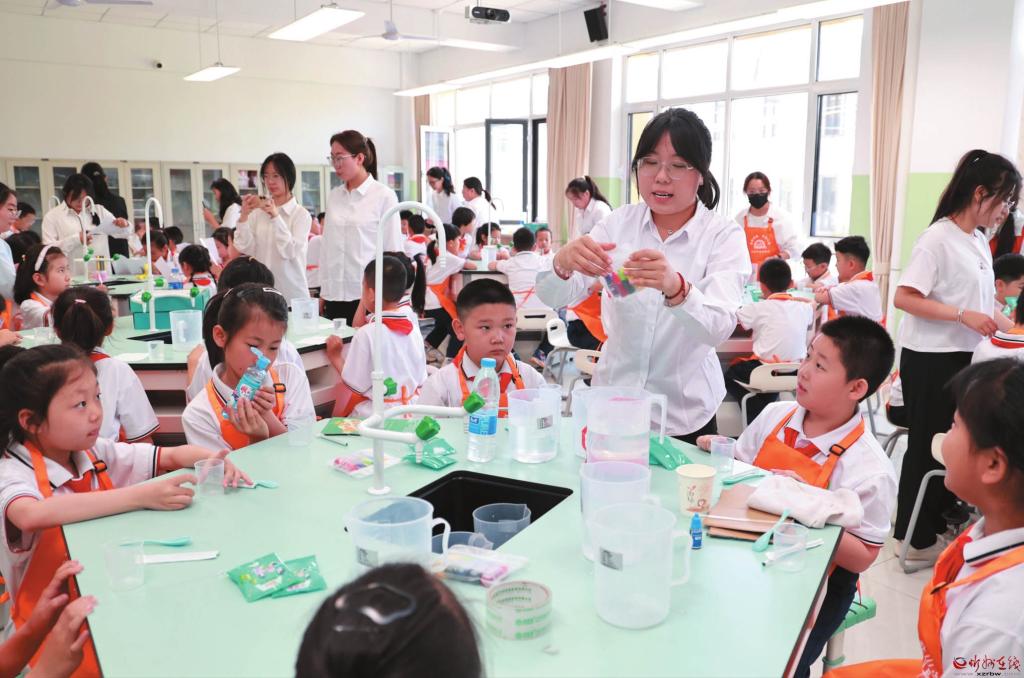 5月14 日,忻州師范學院生物系和忻州市七一路小學聯合舉辦“探尋奇妙生物,解鎖生命密碼”動植物科普進校園活動。圖為大學生們指導孩子們進行科學實驗。 (