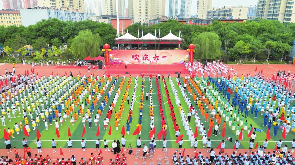 5月30日,忻州市和平小學全體師生歡聚一堂,載歌載舞,通過合唱、舞蹈、武術、團體操、模特表演等形式慶祝屬于自己的節(jié)日——“六一”國際兒童節(jié)。