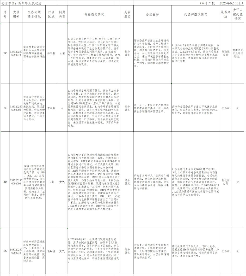 中央第一生態環境保護督察組群眾信訪舉報轉辦和邊督邊改公開情況(第十二批)