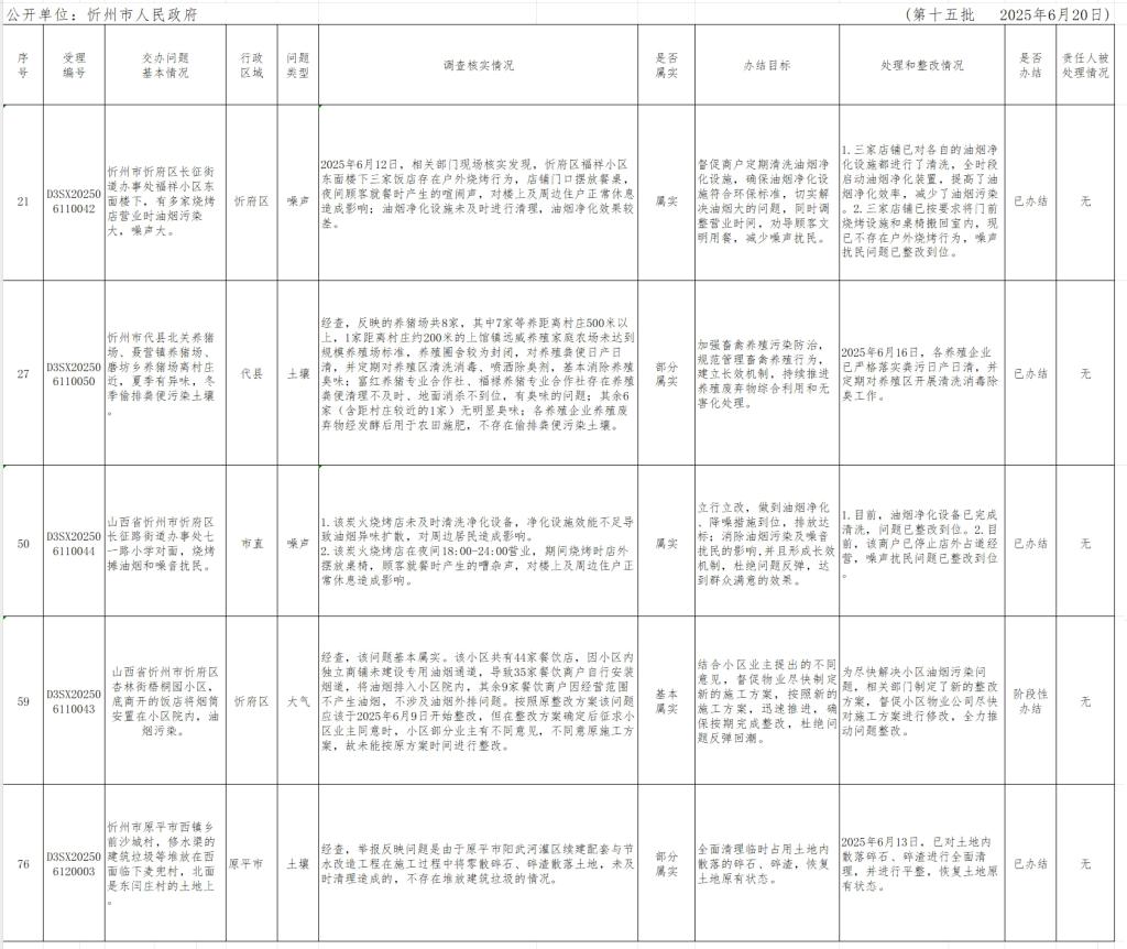 中央生態環境保護督察組群眾信訪舉報轉辦和邊督邊改公開情況一覽表(第十五批)