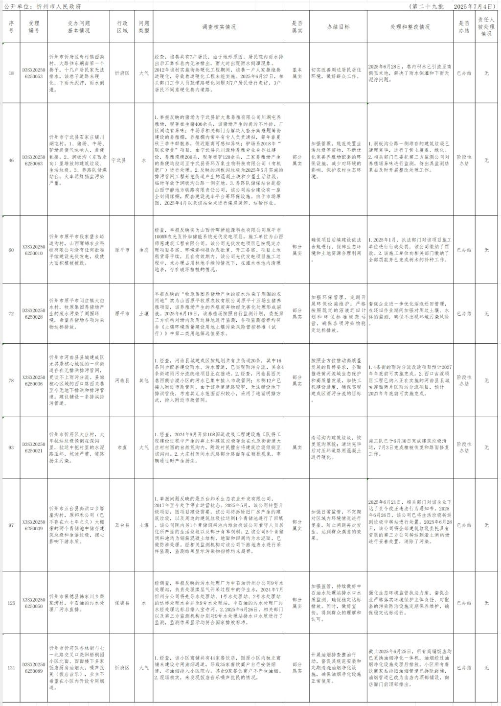 中央生態環境保護督察組群眾信訪舉報轉辦和邊督邊改公開情況一覽表(第二十九批)