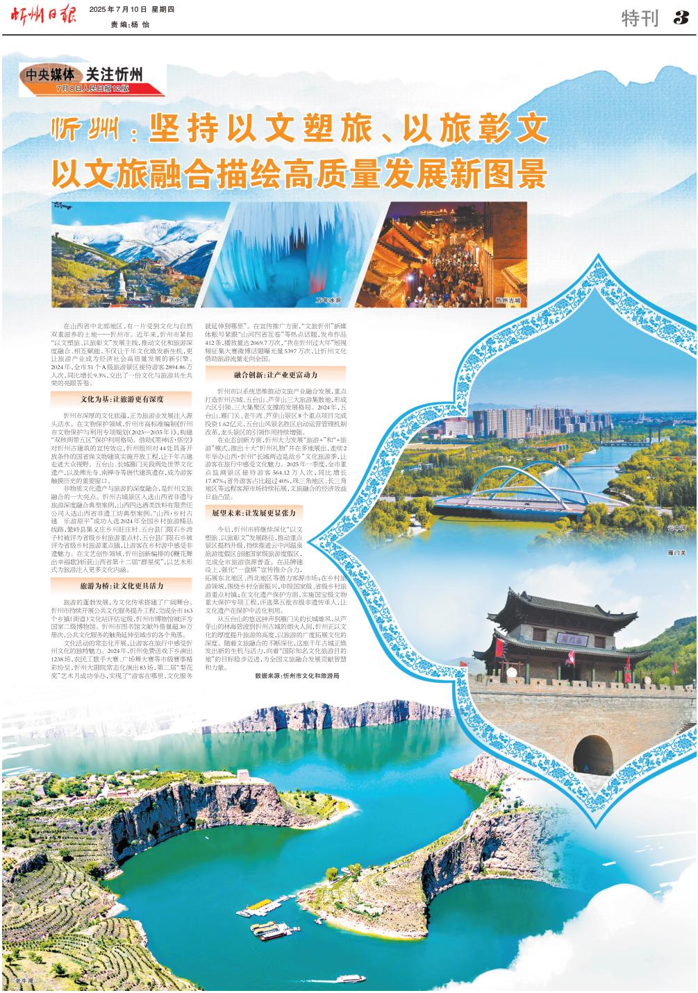 在山西省中北部地區,有一片受到文化與自然雙重滋養的土地——忻州市。近年來,忻州市緊扣“以文塑旅、以旅彰文”發展主線,推動文化和旅游深度融合、相互賦能,不僅讓千年文化煥發新生機,更讓旅游產業成為經濟社會高質量發展的新引擎。2024年,全市51個A級旅游景區接待游客2894.86萬人次,同比增長9.3%,交出了一份文化與旅游共生共榮的亮眼答卷。
