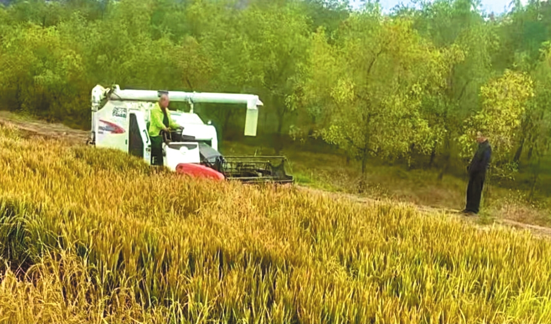 金秋時節,保德縣馮家川鄉的20余畝鹽堿地試種稻田里,金黃稻穗壓彎了稻稈,微風拂過,掀起層層“金浪”。隨著聯合收割機的轟鳴聲響起,成片水稻被快速切割、脫粒、清選,飽滿的谷粒源源不斷地被送入儲糧箱,標志著當地首次鹽堿地水稻試種迎來豐收。經測算,畝產達830斤左右,順利達成預期產量目標。