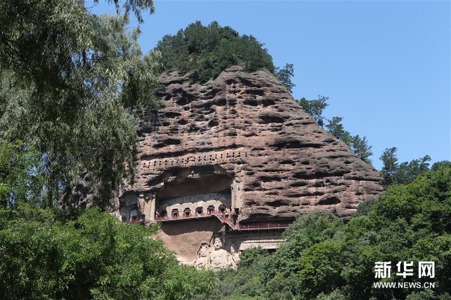 麥積山石窟位于甘肅省天水市境內,始建于距今約1600年的后秦,現存窟龕221個,各類造像一萬余身,以其精美的泥塑藝術聞名,被稱為“東方雕塑陳列館”。