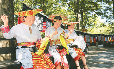 湖南省邵陽市隆回縣虎形山瑤族鄉崇木凼村村民在挑花。曾勇 攝(人民圖片)
