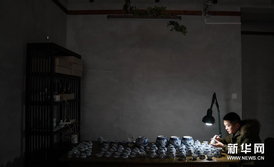 團隊負責人汪敏輝介紹,一只普通的青花茶杯,從成型到燒制成功,至少需經10多名工匠之手,不容任何一個環節出錯,團隊成員總是努力把手藝做到極致。新華社記者 胡晨歡 攝