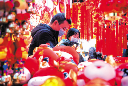 隨著春節(jié)的日益臨近,太原市的市民開始選購年貨,迎接新春佳節(jié)的到來。圖為1月31日,市民在太原市迎澤區(qū)雙塔寺街的一家市場內選購年貨。(新華社記者 楊晨光 攝)