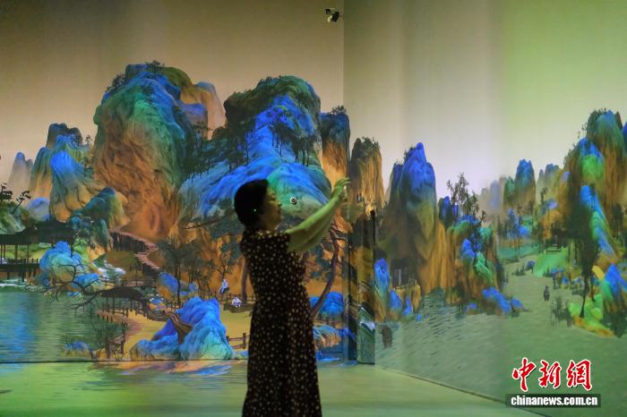 7月16日,游客在“大系”典藏館內體驗“光影丹青”項目。曹丹 攝