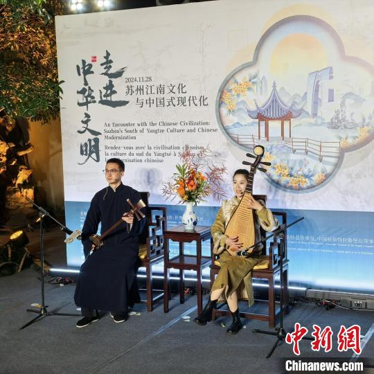 中新網蘇州11月29日電 (記者 鐘升)“月落烏啼霜滿天……”28日夜,蘇州古城華燈初上。以一曲蘇州評彈《楓橋夜泊》為引,“走進中華文明——蘇州江南文化與中國式現代化”主題人文交流活動在世界文化遺產獅子林拉開帷幕。