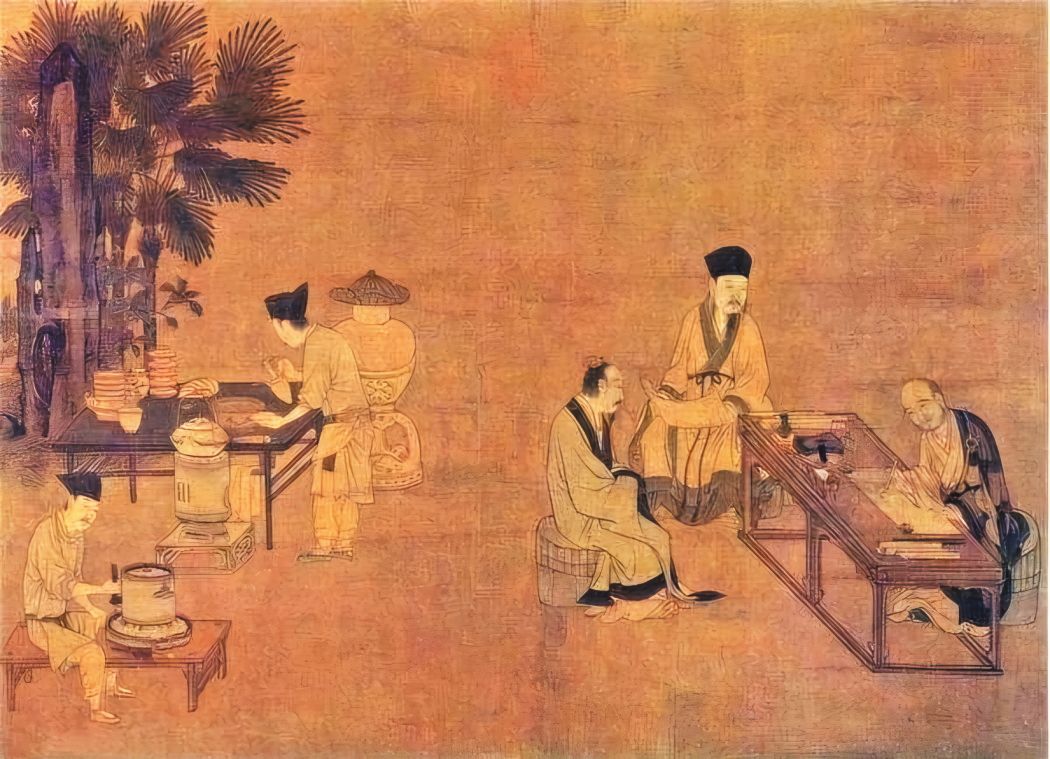 宋代是抹茶發(fā)展的鼎盛時期,彼時文人雅士的斗茶之風(fēng)將品茶之道推向高峰,他們追求完美的茶沫,并不斷精進(jìn)茶藝。宋徽宗對抹茶情有獨(dú)鐘,他的《大觀茶論》詳述了“蒸青團(tuán)茶”的做法。其中“點(diǎn)茶”一篇,論述宋代茶道思想、制茶技藝,不僅描繪出北宋茶業(yè)的昌盛景象,還為后人打開了一扇窺探宋代茶文化之窗。在宋代,茶團(tuán)的制作愈加精細(xì),飲茶過程也更為講究。自采茶始,整個制茶流程皆有專門“茶官”嚴(yán)格把控。宋代講究煎茶法、點(diǎn)茶法和分茶法,使茶湯表面能夠幻化出各種文字或花草蟲魚的圖案,稱為“茶百戲”,精致宛如藝術(shù)品。