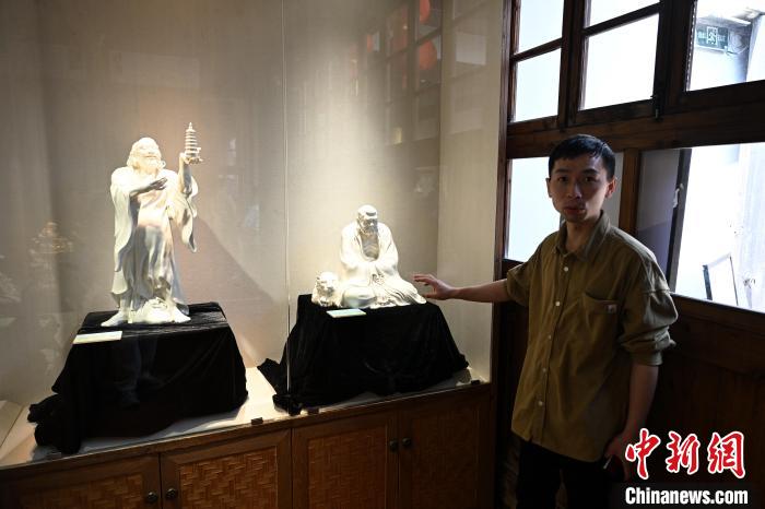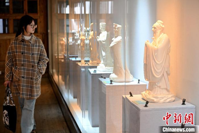 2日,“素白凝光——德化白瓷藝術傳承展”在位于福州三坊七巷的福建省海峽民間藝術館開幕,吸引游客參觀游覽。中新網記者 呂明 攝