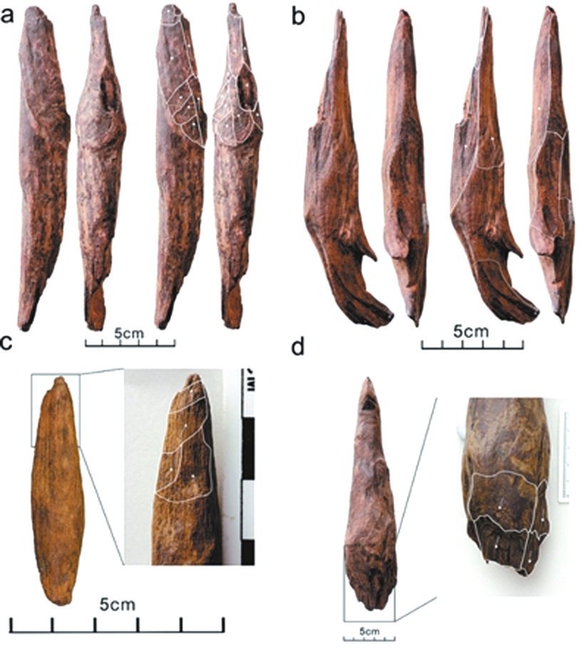 為論證這些木器的人工屬性,研究團隊開展了痕跡分析、殘留物分析和實驗模擬。結果表明,其中19件木器保留明顯的削刮痕,17件尖端表面存在使用所產生的磨光和破損跡象。這些痕跡出現在特定部位并具有方向性,是確鑿的人類加工與使用的證據。一些木器尖端保留土壤殘留物,從其上提取到植物淀粉粒,進一步證明這些木器主要功能是挖掘可食性的地下植物根莖。針對這些木器的模擬實驗表明,此類木器可以用簡單石器加工出來,并可有效用來挖掘植物的根莖。