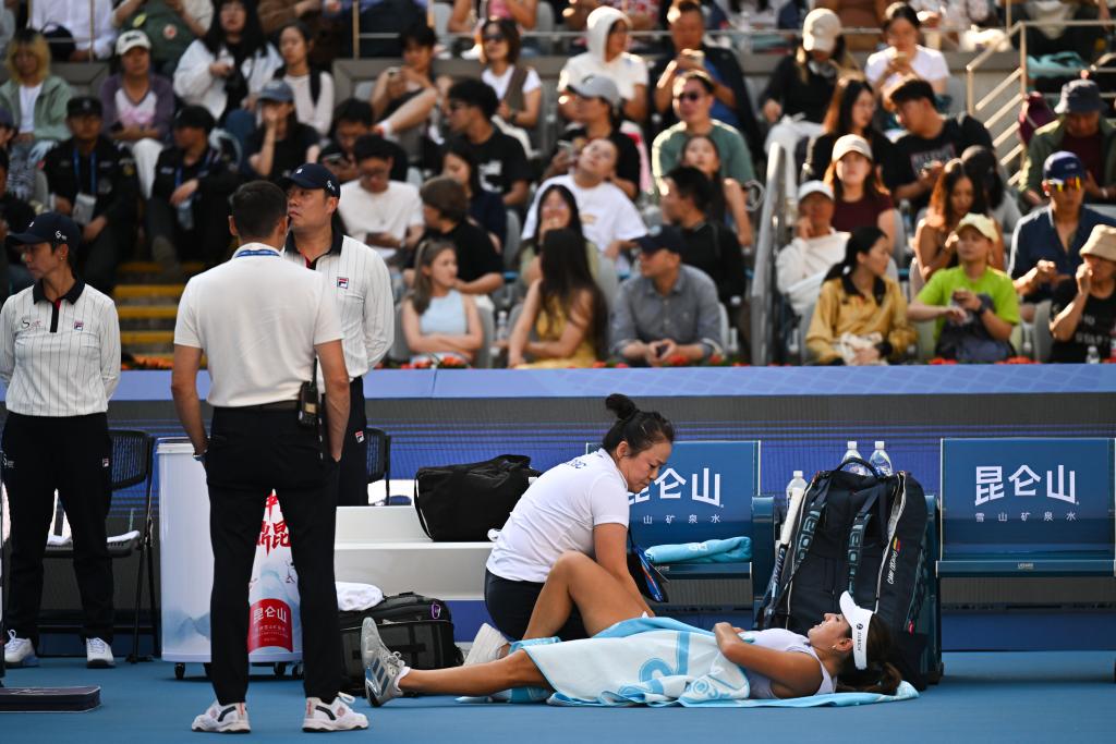 進入第三盤,諾斯科娃先聲奪人,很快建立3:0的領先優勢。局間休息時,醫務人員上場與鄭欽文交流。短暫溝通后,鄭欽文選擇退賽,比賽就此結束。